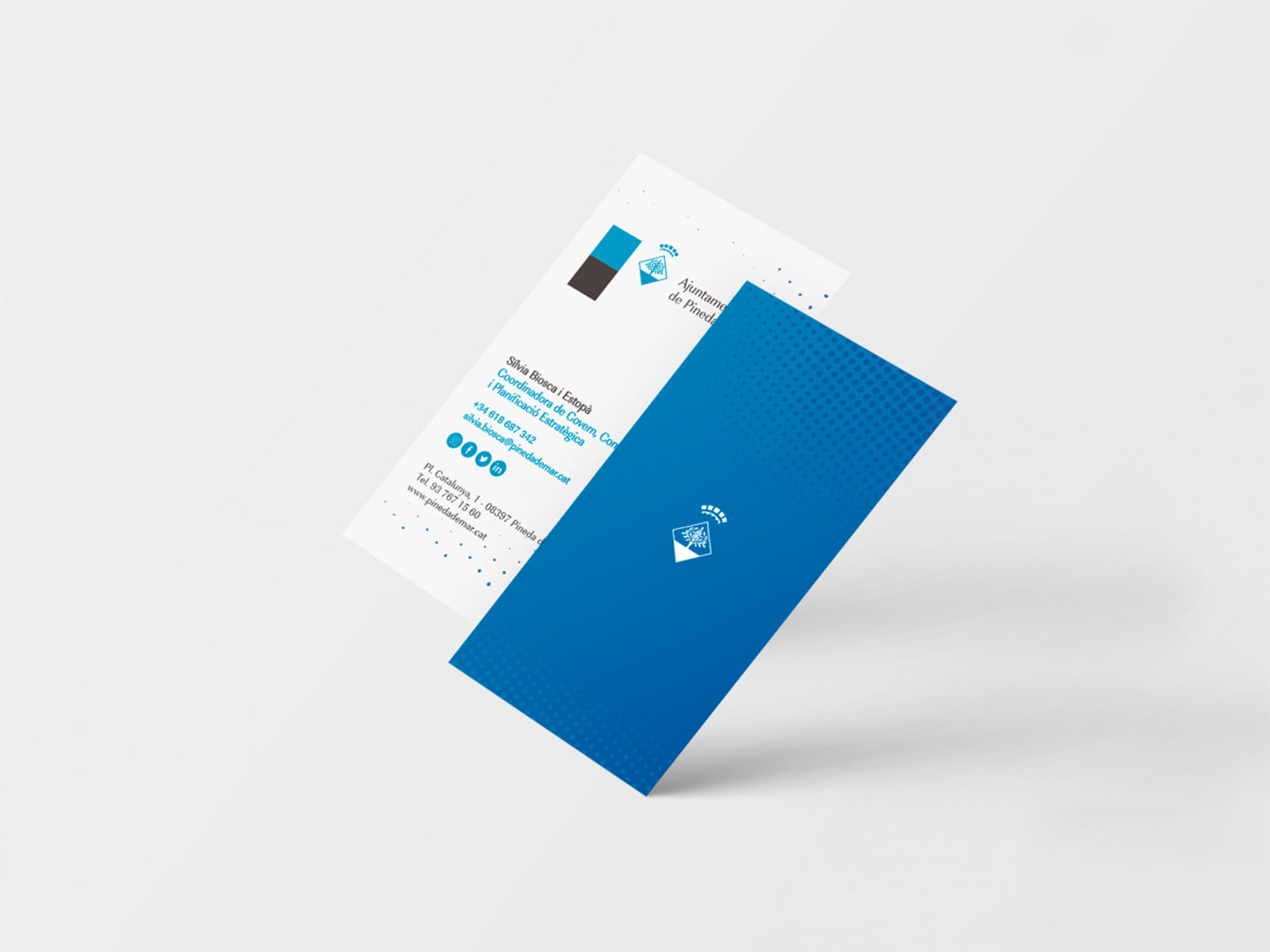 Comprendemos que un ayuntamiento es el corazón de su comunidad, un símbolo de cercanía, servicio y progreso. Por ello, al abordar el las tarjetas del Ayuntamiento de Pineda de Mar, nos centramos en crear unas piezas gráficas siguiendo el manual y guía de estilo que ya poseían pero que reflejara la esencia de la ciudad, utilizando los tonos azules como hilo conductor de la comunicación visual.