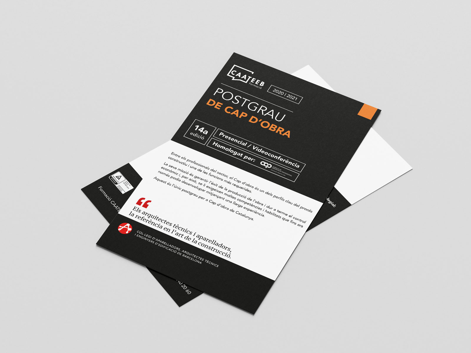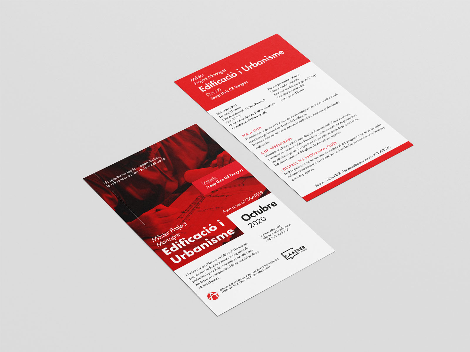 Para modernizar el Cateb, se creó una identidad que refleja profesionalismo y dinamismo. Se usaron tonos rojos para simbolizar energía y pasión. El logotipo de la parte académica y la identidad visual adoptaron un estilo moderno y claro. Se diseñaron catálogos y flyers de cursos atractivos y funcionales. La comunicación, tanto en persona como en línea, es profesional y cercana. El objetivo es posicionar al Cateb como un referente en la arquitectura técnica catalana.